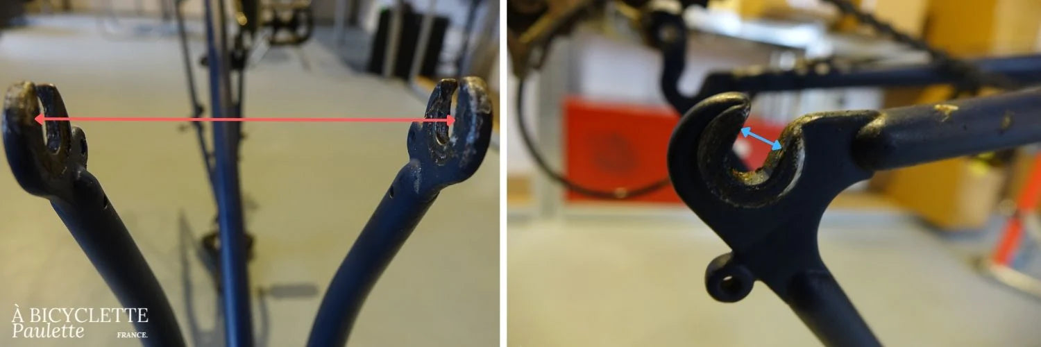 - Entraxe de 135 mm (flèche rouge) minimum si mon vélo à 5, 6, ou 7 vitesses.