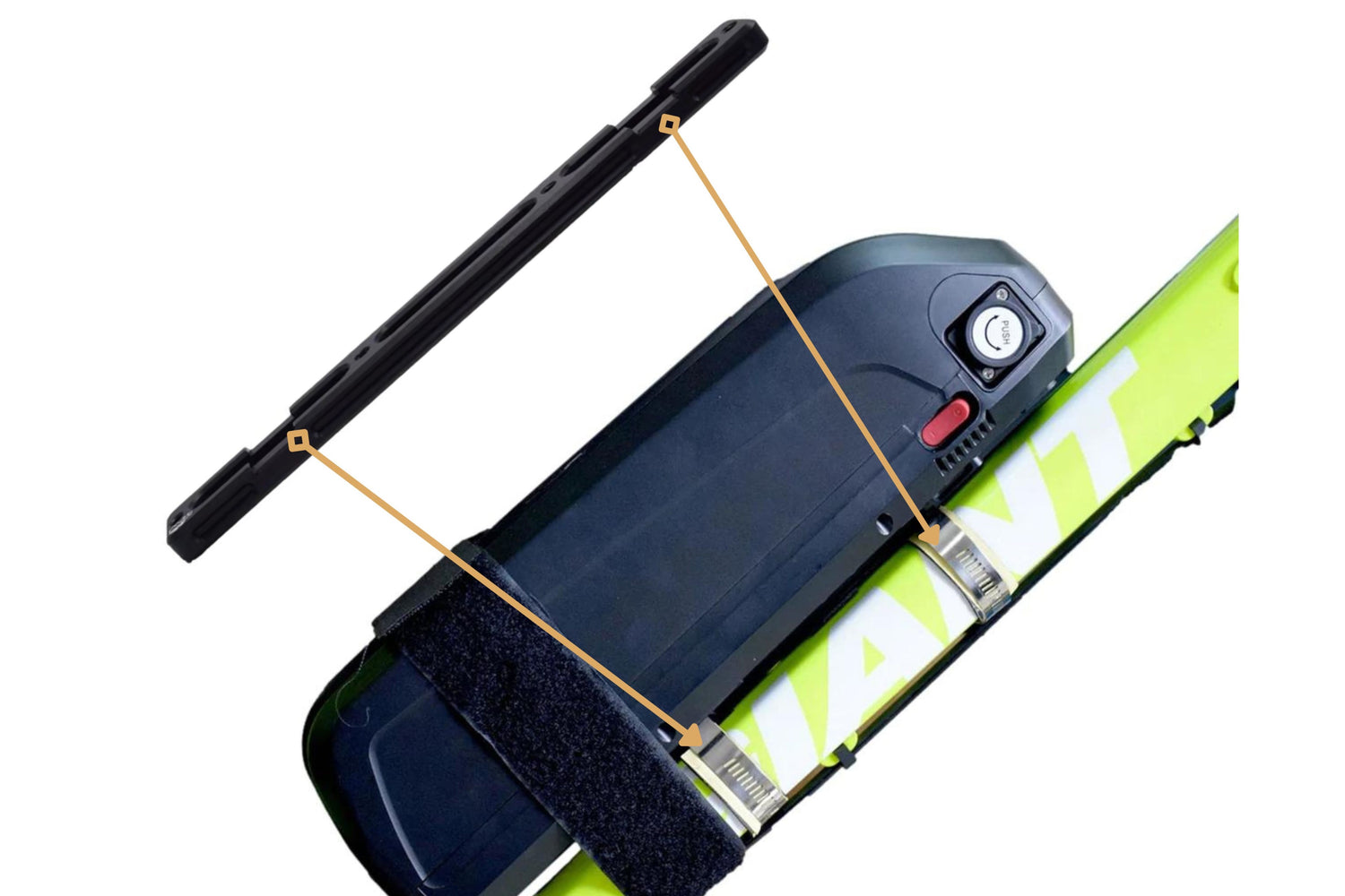 Vous pouvez utiliser ce type de support et le fixer à l'aide de 2 colliers en métal sur le cadre de votre vélo. Il permet de créer plusieurs points de fixation sur un tube droit du cadre pour y fixer le support de batterie.