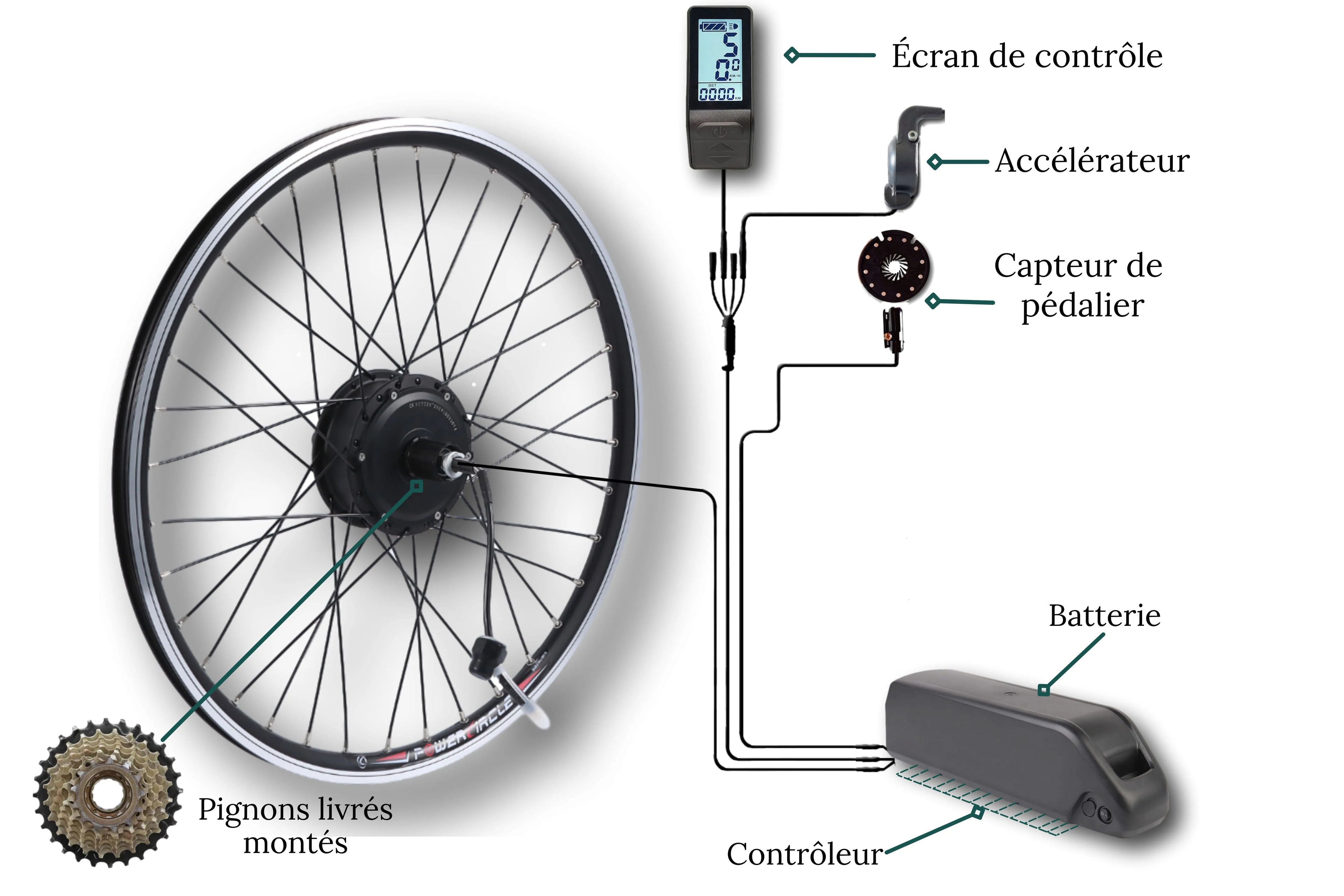 Le kit de conversion électrique Ultime 1200 W comprend tous les composants nécessaires pour transformer votre vélo traditionnel en vélo électrique puissant et performant. Chaque élément a été sélectionné pour offrir un maximum de fiabilité, d’autonomie et de facilité d’installation.